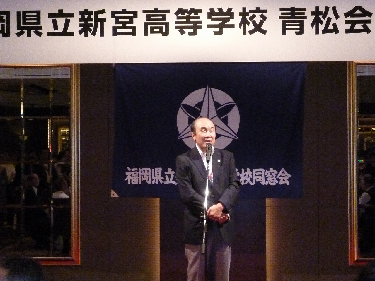 大賀元校長の来賓挨拶。懇親会は佐伯前教頭による乾杯でスタート!