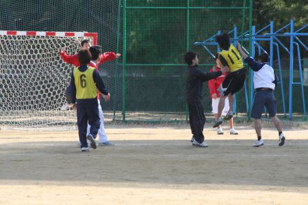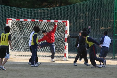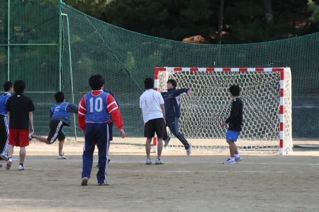 サッカー部と同じく、こちらハンド部も毎年1月3日にOB戦を行っています。